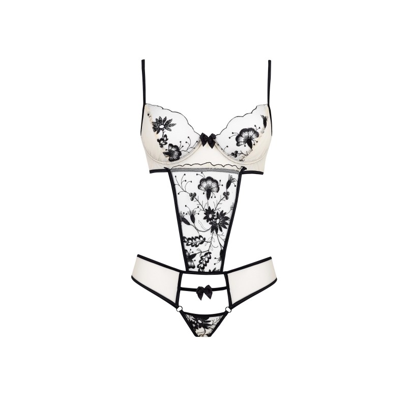 Introducing the Savannah teddy - an incredibly sensual choice for women who value elegance and sophisticated style. Made from the highest quality materials, it combines delicate beige with contrasting black accents, giving it a unique character. Embroidered floral patterns add a romantic charm, accentuating feminine curves.