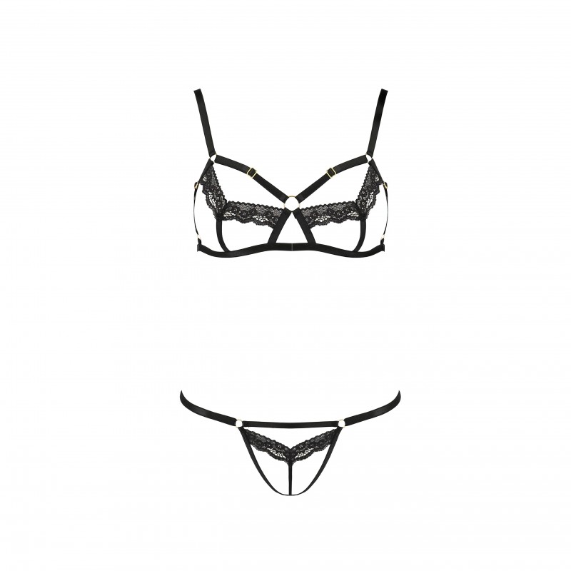 El conjunto Solon es una propuesta única y atrevida, perfecta para mujeres que destacan por su seguridad y no temen innovar con su ropa interior. Con un diseño elegante y seductor, este conjunto despliega una sensualidad que trasciende la lencería tradicional.