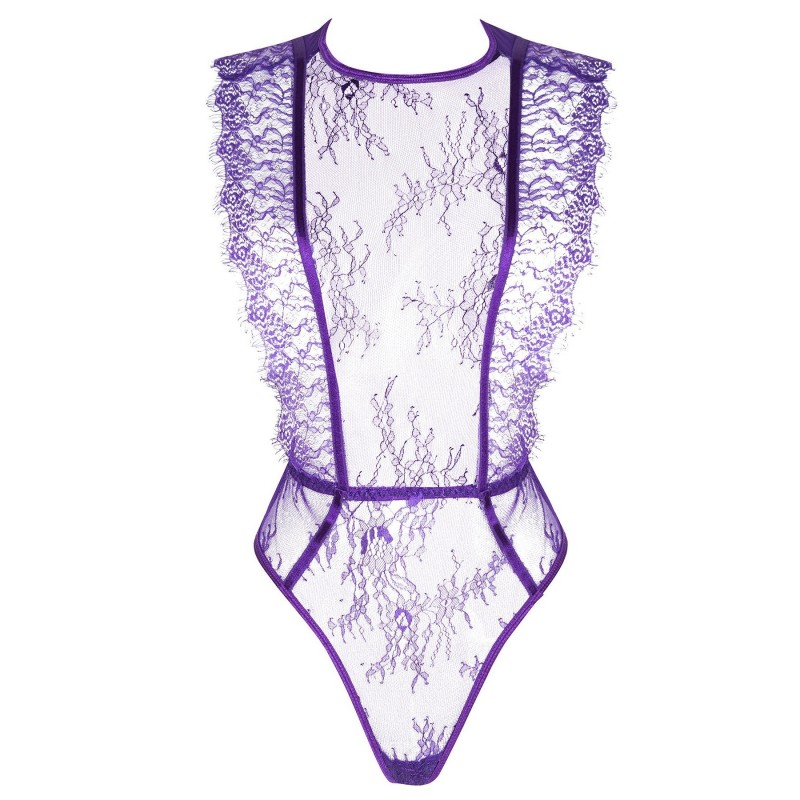 Precioso y extremadamente sexy body de encaje que destaca sensualmente las nalgas y envuelve delicadamente el cuerpo tentador con transparencias. Deleita por hermoso, delicado encaje y un corte eficaz.