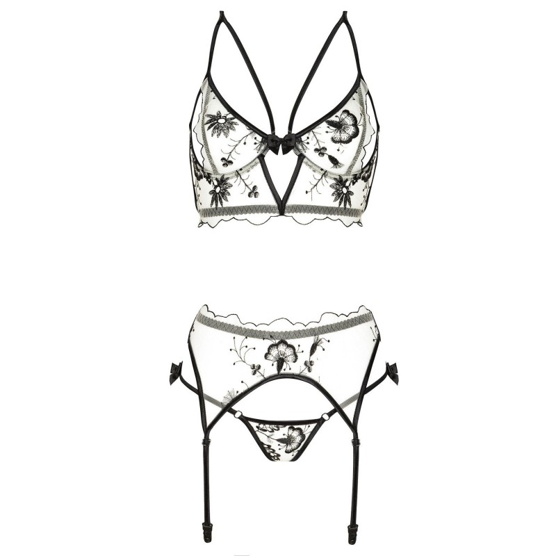 El conjunto Savannah es un cautivador conjunto de lencería diseñado para resaltar su encanto femenino. Este conjunto combina delicados bordados con tejidos transparentes para un look irresistiblemente sensual.