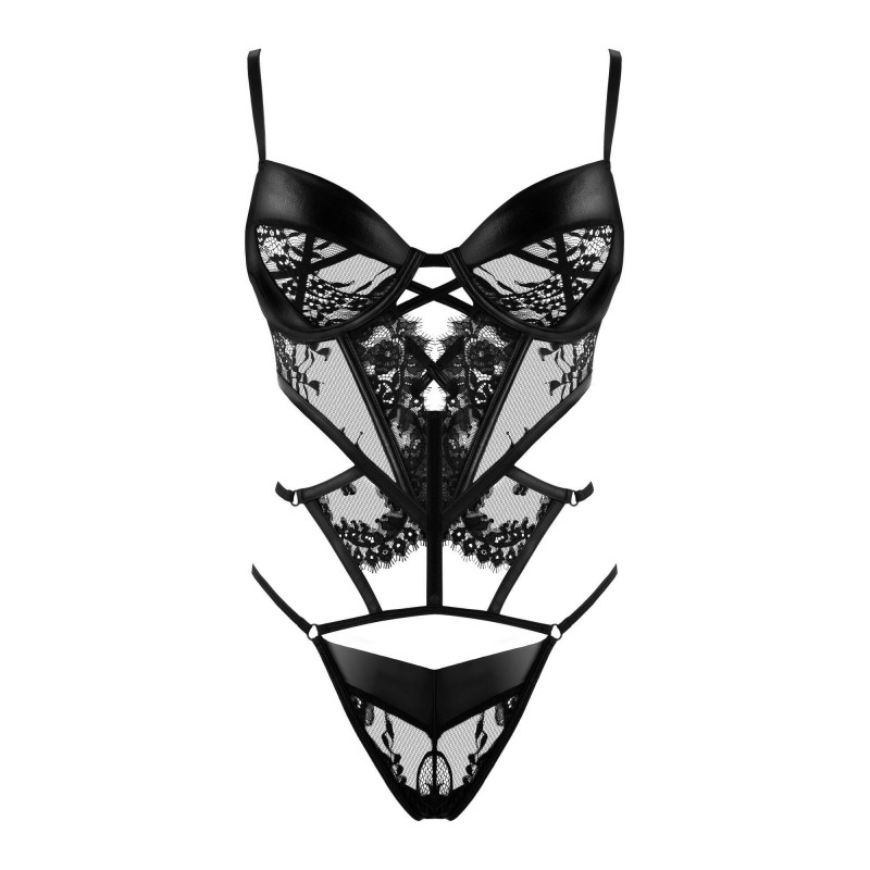 Leonela est un choix audacieux pour les femmes confiantes qui veulent mettre l’accent sur leur sensualité. Fabriqué à partir de matière wetlook qui ressemble au latex, et de belles dentelles délicates, il offre un effet visuel extraordinaire.