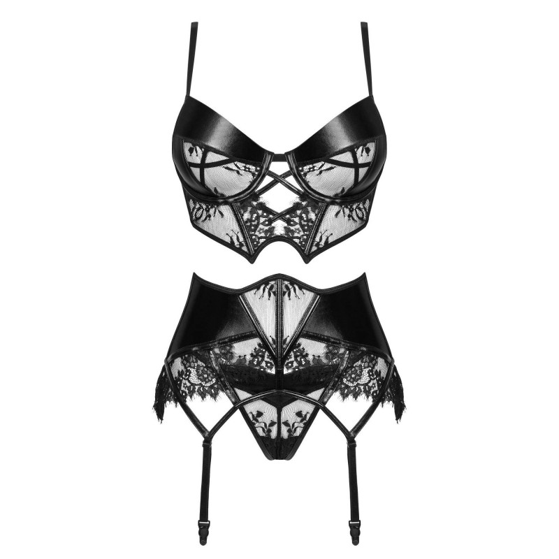 La magnifique parure érotique Leonela en noir ne manquera pas de susciter le désir et l'admiration. C'est le choix idéal pour les femmes qui veulent se sentir spéciales et sensuelles.