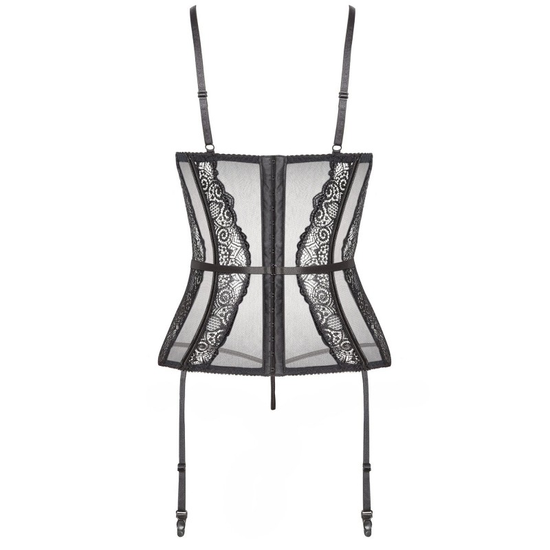 Design: Le string se combine parfaitement avec le corset, créant un ensemble harmonieux. Les bonnets rembourrés offrent un excellent soutien et donnent une forme au buste. La fermeture éclair au dos permet d'enfiler et d'enlever facilement le corset. La dentelle délicate souligne les courbes féminines et ajoute de la sensualité.
