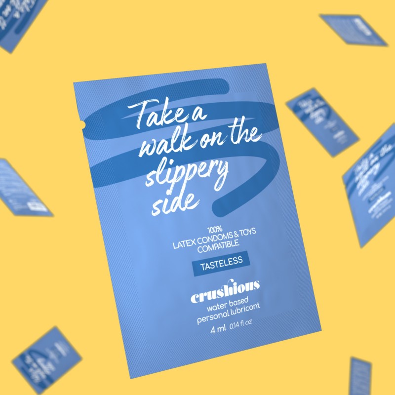Os lubrificantes à base de água Crushious são seguros para uso com preservativos de látex e compatíveis com todos os brinquedos sexuais.